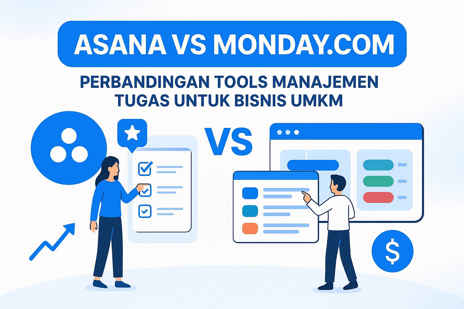 Sebagai pemilik UMKM, ngeliat tim kecil yang tiba-tiba kewalahan dengan tugas, deadline, dan komunikasi yang berantakan itu bikin kepala pusing. Budget terbatas, waktu lebih terbatas lagi, tapi butuh solusi yang beneran nggak cuma bikin keren di mata klien doang. Dua nama yang sering muncul: Asana dan Monday.com. Keduanya populer, tapi mana yang actually cocok untuk bisnis skala UMKM? Saya sudah pakai keduanya untuk klien, dan ini perbandingan jujur tanpa filter.