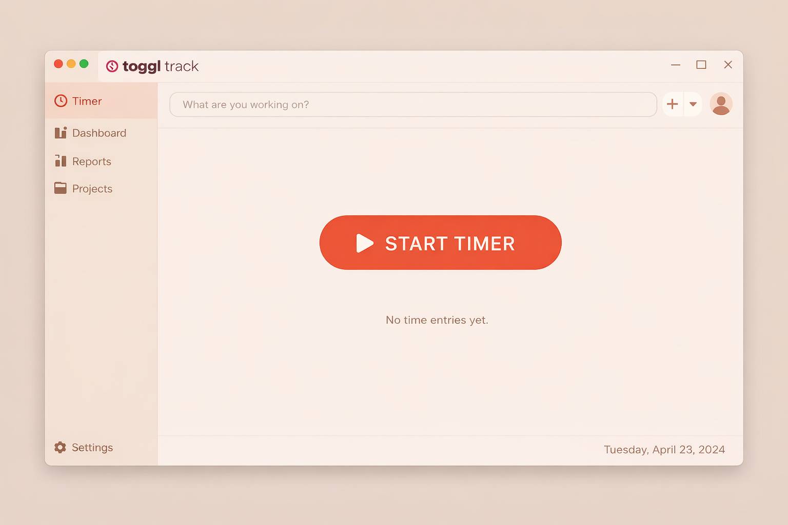 Gue instal Toggl Track di laptop (Mac) dan HP (iPhone). Pertama kali buka, langsung diminta start timer. Gak ada wizard panjang lebar. Gak perlu setup kompleks. Ini poin besar buat gue. Kamu tau kan, freelancer itu malesnya setengah mati kalau disuruh isi form 10 menit cuma buat nyobain aplikasi.